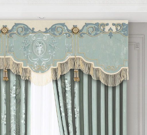 - 外簾加細花邊、窗幔做水波褶皺,還藏了珠串小細節,燈光下閃微光,精致感拉滿。